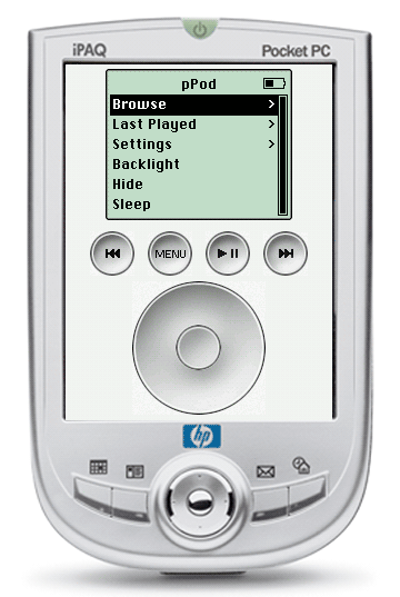 The pPod is a software clone of the iPod interface for Pocket PCs: